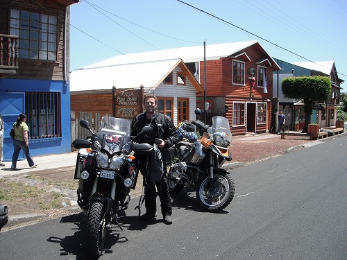 しばらく走るとまたダートに入ります。ネルトゥメ(Neltume)を過ぎて、プエルト・フイのフェリー船着場へ。フェリーは停泊していましたが、今日はもう出航しないと。どうも毎日1時に出航みたいです。しかし、フェリーは故障中とか。なので小船で湖を渡ることになります。しかし小船は一度に車2台しか運べません、なのでワシ等は明日11時に船着場に到着し、場所を確保しようということになりました。