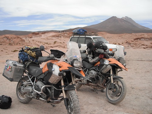 I was thinking to leave Uyuni around 9am, but I woke up around 6am. When I got up and went out side, I met Gottfreid - the owner of another orange R1200GS! His GS has a Hilean number plate, but he is from Germany. He said he bought it in Chile and travelling around Chile, Peru, Bolivia and Argentina for 3 months.