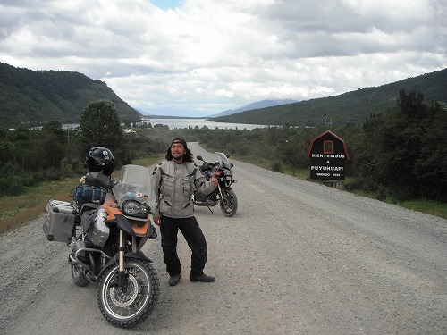 今度は山を降って行きます。しばらく走ると舗装路に。キレイに舗装されています。昨日ファビアンが言ってたの通りですね。ヴィジャ・マイウアレス(Villa Maihuales)を過ぎ、快調にワインディングを飛ばします。