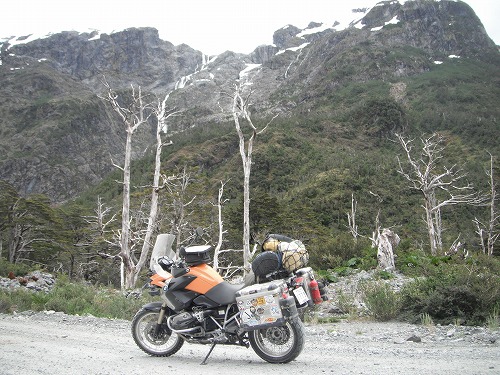 オイルを足してると、兄ちゃんが1人「Hecho en Tepito (テピート製)」ステッカーを見て感動してます。かれはメキシコ人。テピートとはメキシコ・シティの問屋街。トクさん、ツルさん、カザフたちと遊びに行ったのを思い出します。楽しかったなぁ。更にメキシコ人、プーマスのサポーター「REBELS」のステッカーをみて感動してます。プーマスはメキシコのサッカーチーム。彼もパタゴニアで祖国の面白ステッカーを見るとは思わなかったでしょう。給油し出発。