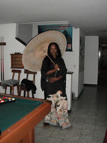 夜は牛肉の佃煮とソボロタマゴとインゲンで三色丼。本当に食卓が豊かです最近。スコットが最近一緒な姉ちゃんがスゴイ爆乳です。いや、マジでスゴイです。写真撮りたいのですが、あからさま過ぎて撮れません。そしたら女将のクラウディアがユウコさんからプレゼントされた着物を出してきました(姉ちゃんが芸者の話をワシ等に聞いてきたので)。で、姉ちゃん着物を試着!これで爆乳を写真に撮れると意気込みましたが、着物で爆乳が分りづらく・・・。スミマセン・・・。いや、本当に素晴らしい爆乳なんですよ。