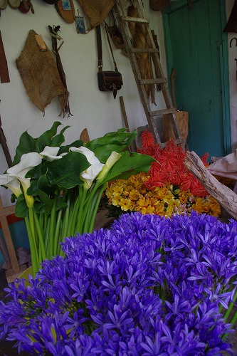 エルナンの家まで牧場のをいくつか越えていきます。エルナンはアーティストらしく家のオブジェがとてもヘンテコです。「博物館」だと言っております。庭には花が沢山植えられていてそれを売って生計を立ててるみたいです。