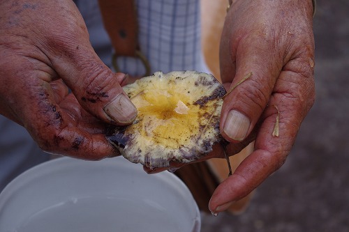 さてここから「キノコ」狩りです。エルナンは何故か山刀を腰にして出てきました。「キノコ」は牧場に生えてます。まぁ、基本的に牛糞の跡に生えてます。しかし、どれが食べられるのかはワシ等にはわからないのでエルナンが狩ります。かなり似てるキノコもありますが、「毒」だそうです。こりゃヤバイな。
