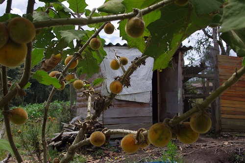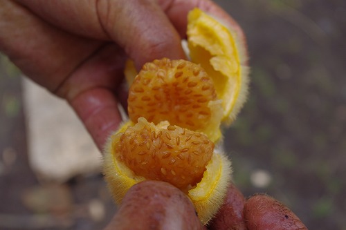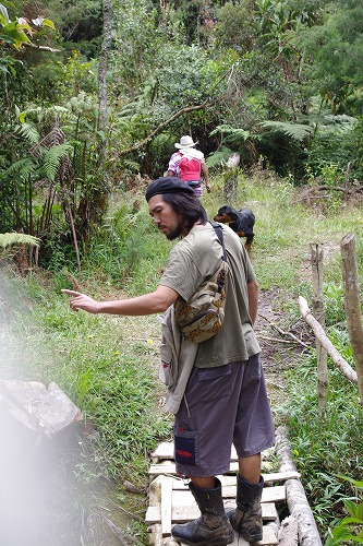 連日の雨で牧場はかなりグチャグチャ。泥にはまったり、すべったりで楽しいですねぇ。ライダーブーツ穿いて来てよかった。途中で「キノコ」を生で食べます。さっき買ったチョコレート菓子と食べます。まぁ、味は普通のキノコですねぇ。大体30分くらいで「消化」するそうです。途中の民家で木に生ってるフルーツをもいでもらったり(美味しかった)、カンポの散歩は楽しいですね。
