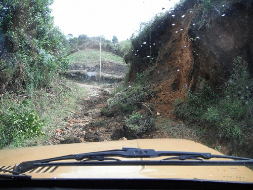 ラファの彼女オルガをメデジン行きのバス停まで送ります。なんかスゴイ所を行くな。完全にダートです。250ccのダートバイクで走ったら楽しそうだな。登り、ガレ場、ギャップ、川越あり。