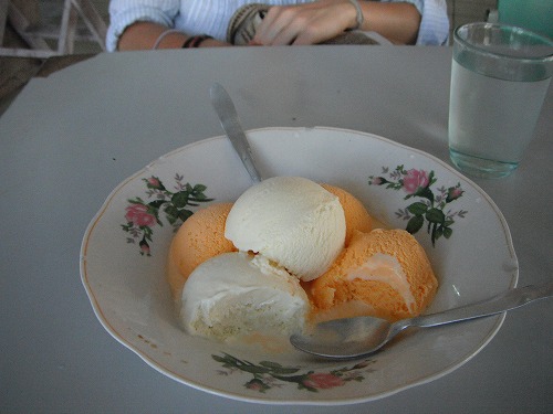しかし5スクープで2.5CUPは格安です。見てくださいこのボリューム。味はバニラ(?)とオレンジ(?)でしたが、オーストラリアで一番易いHomebrandやSavingsのアイスクリームを髣髴させてくれました。