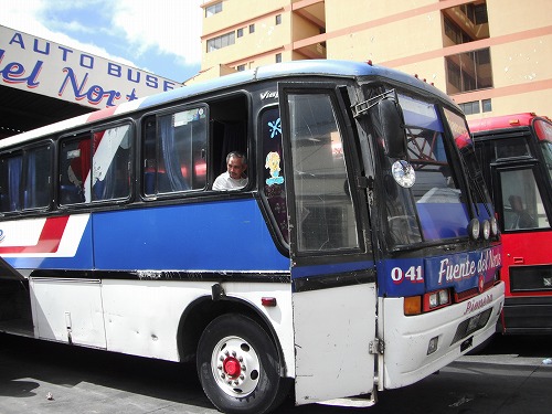 8時半に宿を出て、ワシらがフローレス行きのバスターミナルに着いたのは10時半ごろ。バスのチケットには11時とありますが、実際に出発するのは12時だとのこと。やはりグアテマラも時間にはルーズだったのか…。バスの会社はFuente del Norte (FDN)です。