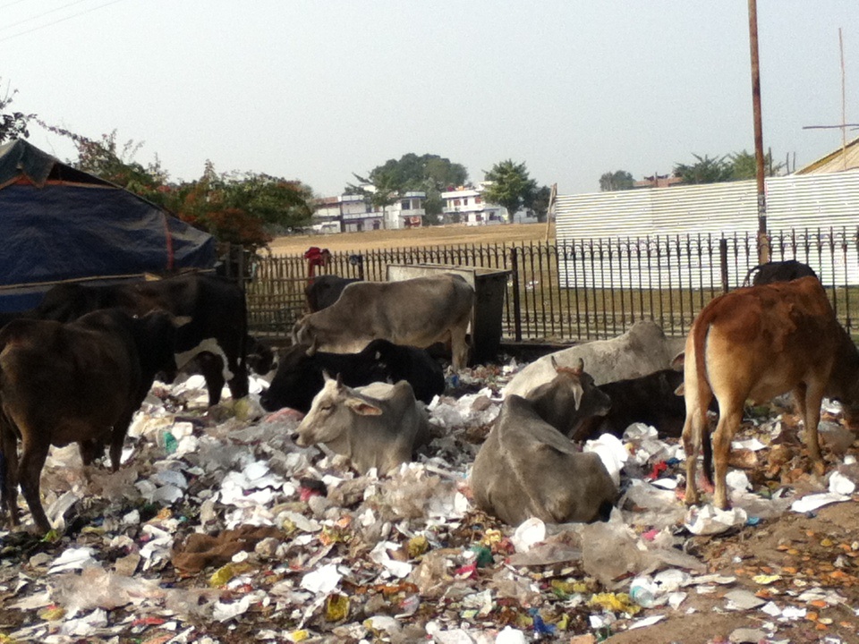 玉ちゃんと連れ立ってお茶でも。途中にゴミ溜めがあってそこには牛が寝っ転がっている。これが、インド。