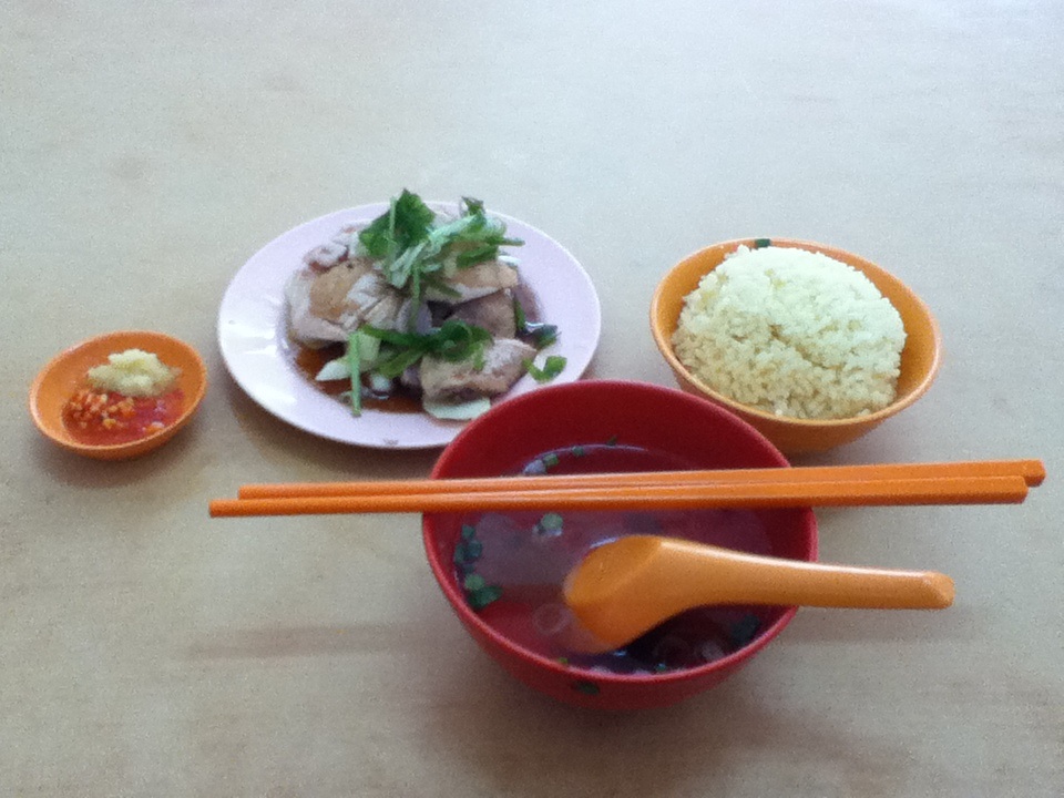 海南鶏飯を昼飯に。5リンギット。これで残り15リンギット。