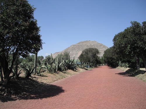 月のピラミッドまで歩いて日陰で一休み。ここからピラミッドを見上げると中々のものです。物売りのオジサンさやって来て「ほとんどタダ」と言っています。いくらか聞いたら「一万円」と。たかいよ!ジョジョの石仮面ぽいのがあったのですが、流石に運べないので買わずにしばらくオジサンと話してました。 まあ、なんだかんだで楽しかったですが、遺跡という感じがしなく考古学興味は満たされなかったですね。