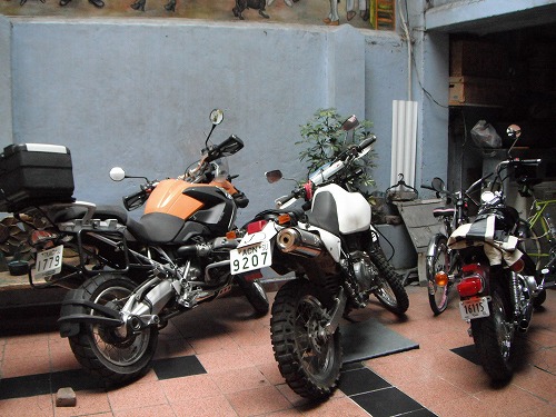 In the afternnon, Kouji came back with a brand new YAMAHA Virago. We all helped him to take the bike inside the building and talked about the bike. There are three motorcycles in Pension AMigo again!