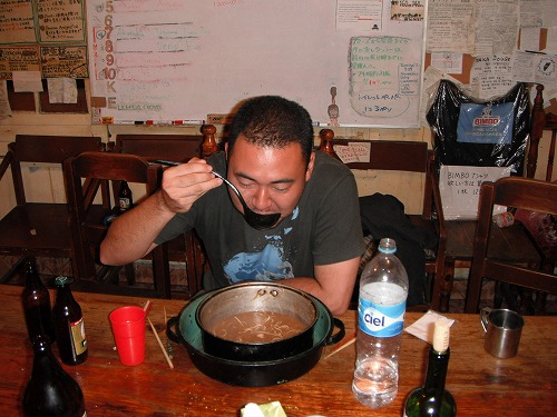 We cooked Japanese Hot Pot for dinner. 10 of us eating together. The soup was MISO flavour and it was awesome. El Chino ate a lot and everyone was surprised with his apetite!