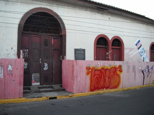 夕方涼しくなってからちょっと街散策。ここはゲリラ軍サンディニスタ(FSLN)の本拠地。今は内戦に勝ち抜いて政権を担ってます。ゲリラ軍がアメリカの後押しを得ている政府軍を倒したのはキューバと同じですね。すごいことです。旗も赤と黒でキューバ革命軍M-26-7と同じですね。サンディニスタについてもう少し勉強したいですね。