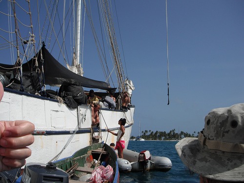 We took the Kuna boat back to our ship, carrying lots of big lobsters and 3 big fish. They were to be our dinner. How wonderful!