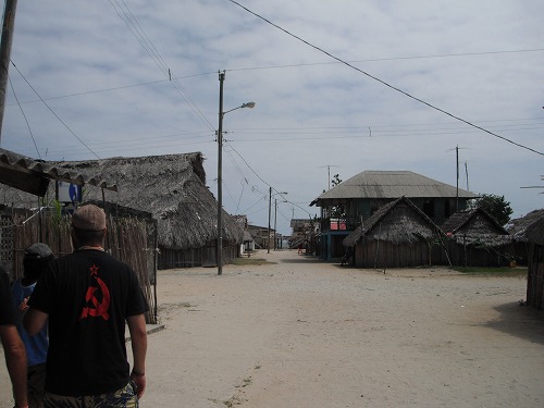 クナの村はコンクリートの建物と椰子の葉で作った建物とが混在してます。人口は500人とか。思ったよりも多い。政府が電気を安く供給してくれるそうで冷えたビールにコーラ、テレビにDVDと何でもござれ。便利になったそうです。