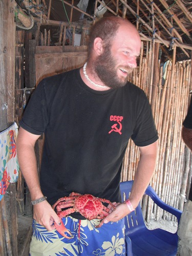 今日はジョン、ジョシュ、アダム、ドクタージョンとクナの村に行ってきました。ジョンが「カニを食いにいかないか?」と誘ってくれたもので、つい。食べ物に弱いんですよね。