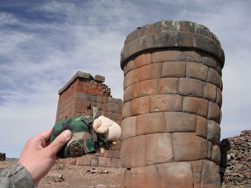 この石塔はお墓なんです。インカ以前の文化からの伝統だそう。円柱の石塔がプレ・インカで四角いのがインカですかね。