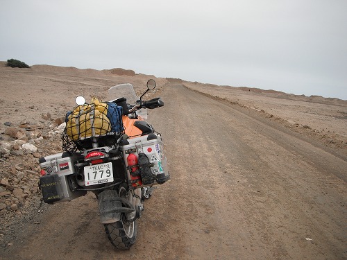 そしたらマーク&クレアが飯屋に現れました! Naylampの前まで来たのですがガレージが無そうなので、昨日ワシが泊まってたHuanchaco Gardenに泊まってるとのこと。マークのXT600 Tenereのフォークシールが壊れたのでトルヒーヨで部品を探すので数日滞在するとか。