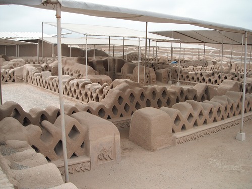 結構手直しされているとは思いますが、魚やペリカンのレリーフなどなかなか味があります。チムー王国の首都だったみたいで、チャンチャンとは「輝ける太陽」の意だとか。あ、世界遺産です。チムー王国はインカと抗争を続けて頑強に抵抗したので滅ぼされた後チムー人だちは強制移住されたとか。1470年代に滅びたとか。スペイン人がインカを滅ぼした60年くらい前なんですね。