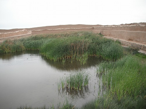 宮殿の真ん中に泉(池?)があり、まだ水をたたえてるんです。これは面白い。その奥に王宮があり、一番奥に王墓があります。全て日干し煉瓦で造ったんですね。在りし日のチャンチャンはどんな姿だったのでしょう。