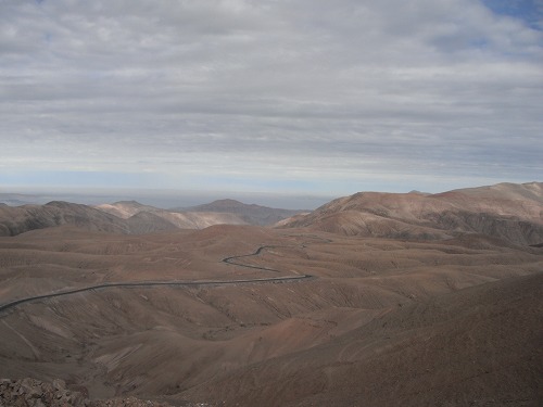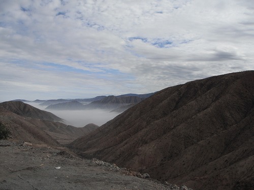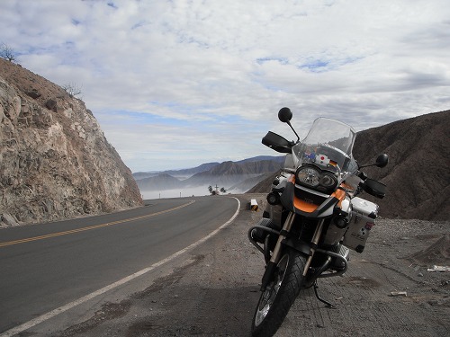 ナスカの街を出てパン・アメリカンから左折すると国道26号です。のっけからワインディングの登り道。天気は曇り。霧にならないことを願います。
