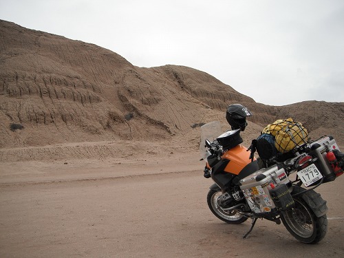 それから一気にリマへ。ウアチョ(Huacho)を過ぎたあたりから小雨が。結構寒いです。そしてリマに入る手前パンアメリカンがちょっと高度を上げるんですが濃霧発生。5メートル先も見えません・・・。ゆっくりと走ります。