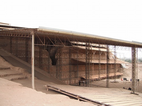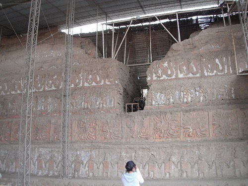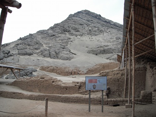 今日は多少咳が出ますが大分調子いいです。8時には出発の準備完了。先ずは太陽と月の神殿(Huaca del Sol y de la Luna)。 モチェ文化が残した遺跡です。モチェはチャンチャンを残したチムー王国の前身です。日干し煉瓦で造られた巨大ピラミッド的神殿です。トルヒーヨの南に位置してます。
