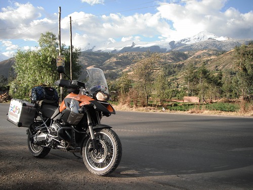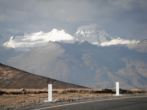舗装路を快適に飛ばします。氷河の頂がちらほら見えます。いいですねぇ。Yangayを越えCarazを越えると暑くなってきました。標高が下がってきてるのかな?