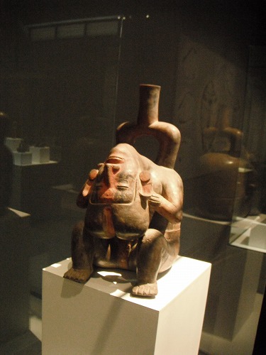 博物館と月の神殿12ソル。博物館内は撮影禁止。しかし土器などいろいろ面白いデザインのものが多いです。アザラシとかもあります(エルニーニョの時は魚が減るのでアザラシが網を破って魚を食べてしまうのでアザラシを棍棒で撲殺していたらしい)。モチェの土器、好きですねぇ。表情が豊かです。