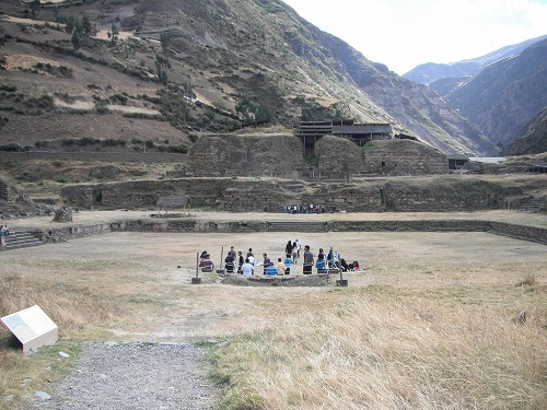 そっちにいくとチケット売り場があります。チケットは4ソル。ガイドと一緒の行動となります。ペルー人のオッサンとお姉さん2人が一緒です。どうやらワシは裏口から入ってしまったよう。