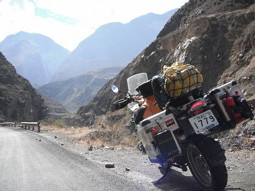 峠は一番高いところで4,000mを越えてました。そこから一気に海岸沿いまで下がります。急カーブが続く山道を走り抜けます。舗装は新品のいい常態なので何の心配もなくコーナーを曲がれます。