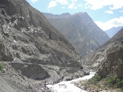 Going thruogh Yangay and Caraz. On the way to Caraz, the road was mostly paved in good condition. However, after Caraz, the nicely paed road turned to be a gravel road... The conditon was pretty bad considering the paved part of the road. But from here, Canon del Pato begins.