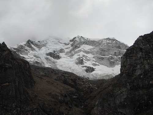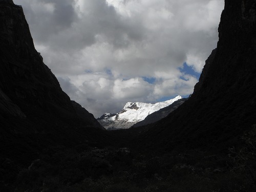 そしていきなり目の前には氷河を頂いた山脈が! コーディアラ・ブランカです。美しいですね。これは来た甲斐がありました。GPSで高度を見ると4,256メートルとありました。今までで一番高い峠かも。