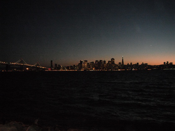 荷物を置いたら街へ。どうもサンフランシスコは物価が高いですね。ゴールデンゲートブリッヂ(金門橋)を越えようということになり、ドライブ。間違えて高速に入ってしまい違う橋を越えてしまいました。トレジャーアイランドで降りてみたらアルカトラズ島とサンフランシスコの街が夕陽に映えて綺麗でした。