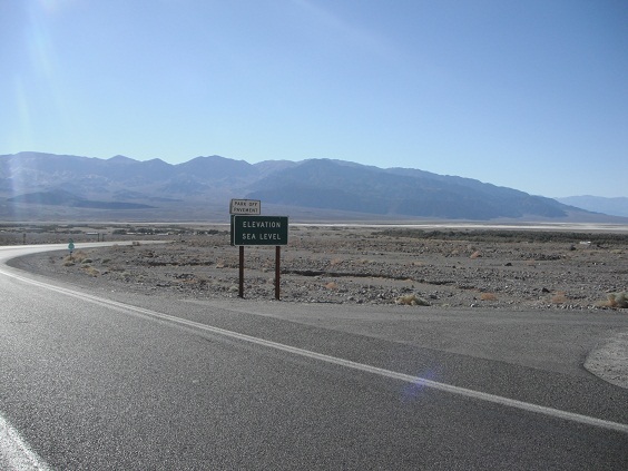 バッドウォーター(Badwater)は途中まで歩いたのですが、暑くて倒れそうなので(バイクのジャケット着てますので)、また明日朝の涼しいうちに来る事にしました。ここは北アメリカ大陸で最も標高が低い所です。海抜マイナス86メートルです。気温もアメリカで1番を記録してます。57度でしたっけ。 砂丘とかあるしキャンプ場タダだし、ここ暑くなければさいこうですね。あ、入園料は10度るです。しかし!ガソリンが高い!1ガロンあたり4.45ドルもします。今までで最高額です。雑貨屋を覗いてみましたが、基本的に雑貨とかも高いです。デスバレーに来る時は色々持って来たほうがいいですね。