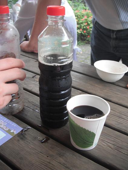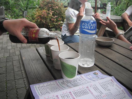 山歩きの後は冷たいお茶で渇きを潤します。みると伯父さんたちがなんか黒くて醤油みたいなのを飲んでます。少し別けてもらうと「仙草茶」でした。ちょっと漢方の味がする軽く甘い飲み物です。キンキンに冷えていて飲んだ後なんか爽やかになります。流石漢方!明治乳業の北海道あずきアイスも買ってもらって、暑さも吹っ飛びました、と言いたいところなんですが、暑いです、相変わらず。