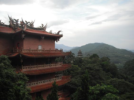Finaly we started the mountain hike. The hiking trail is around 1km, so it should be a piece of cake. But it was so hot, hot hot and humid!!! Climbing up the stairs was quite painful, Sweating like in hell and my body was so sticky! Though I enjoyed the scenery and vegetation of the mountain. As here is Tropic, the green is so deep, much deeper than that of Japan. From far, the mountain lines are similar to those of Japan, but the "thickness" of vegitation is by far greener in Taiwan.