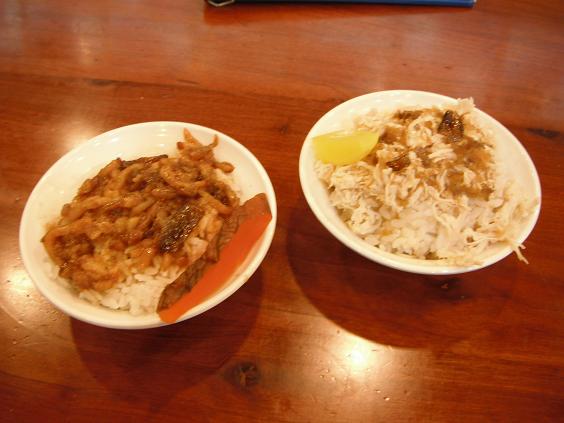 魯肉飯だけでは寂しいので鶏肉飯も頼みました(NT$60)。魯肉飯と鶏肉飯はちょうどお茶碗一杯分の大きさですね。美味しかったですけど他の屋台で食べるのと変わりはありませんね。まぁ、クーラーが利いた小奇麗な店で食べられるのでそこがお得な点かも。