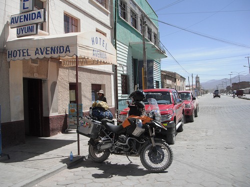 I was thinking to leave Uyuni around 9am, but I woke up around 6am. When I got up and went out side, I met Gottfreid - the owner of another orange R1200GS! His GS has a Hilean number plate, but he is from Germany. He said he bought it in Chile and travelling around Chile, Peru, Bolivia and Argentina for 3 months.