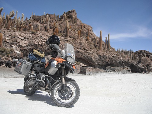 Then we headed to "Isla de Pescado (Fish Island). As we rode to the middle of the salt flat, the hexagonal salt cristal became more clear and more beautiful. I was glad that I made it to the salt flat on my GS, really.