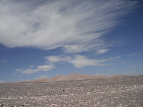 なのでそのまま出発。道は舗装路。風景は最高!! ここアタカマ砂漠は世界で最も乾燥している土地だとか(南極を除く)。カラマを出て直ぐに警察の検問に引っかかりました。でも書類を見せただけでパス。写真を撮影し先に進みます。