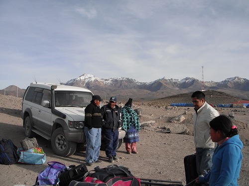 国境線の近くにバンが何台か停っていて、ディエゴたちが交渉。イキケまで10,000チリペソで、と。20米ドル! 高い!!と思いましたが、ボリビア人は皆その値段で納得。