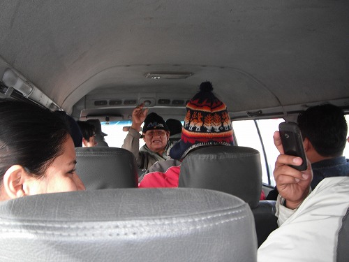 We stayed on the dirt for a while and the collectivo went to the main paved road. Where we picked up a few more passengers. One of them was an ld guy from the same bus.