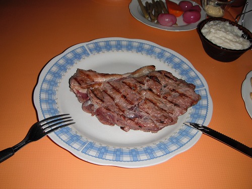 夕飯はステーキ屋「Cumanu Churrasqueria」で。250グラムのステーキとチップス、サラダなどの付け合せで48ボリと少々高いですが、最高のステーキ!! ちゃんとレアに焼かれて、美味い事。アルゼンチンの肉は噂ほど大したことないとよく旅行者に聞くので、ここボリビアで美味い肉を食べておいて正解ですね。捕鯨の話、ヒトラーがもし負けなかったら何を目指していたのか?などについての話、先進国での若者のやる気の無さについての話、東ドイツ時代の話と、いろいろ有意義な話をして盛り上がりました。