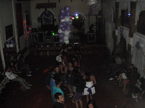 招待状には「7時」とあったので7時前に会場へ。ウベは「ここは南米だから、8時以降に行ってもまだ始まってないよ。」と言ってましたが、その通り。まだ会場は準備中で、「9時ごろ始まる。」と係りのオバちゃん。