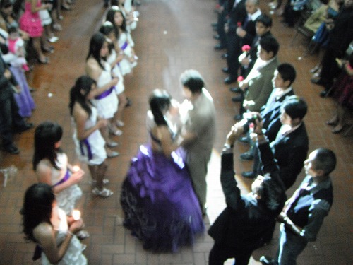11時過ぎにようやく音楽が一旦とまり、セレモニー。14組の男女のペアが整列し、それぞれがニコルの1年を象徴します。そしてニコルが登場し、お父さんとダンス。流石南米、ダンスがやはり重要なんですねぇ。