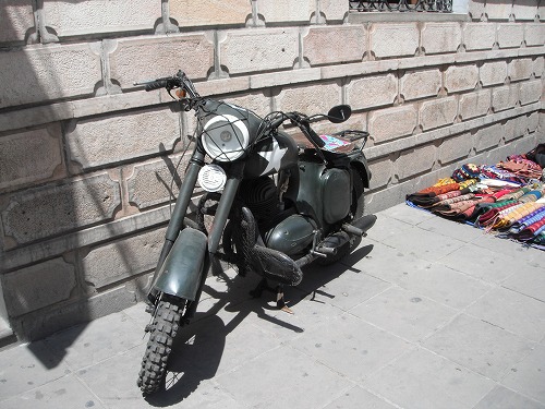 I saw an old motorbike while walking to the supermarket. I have seen quite a few of them in Sucre. I wonder what the make of the bikes. Very cool!