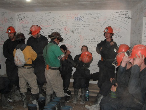 こんなに狭くて、暗くて、息苦しい場所で働いている鉱夫は大変ですね。 この鉱山の神TIOにコカの葉をお供えし、96パーセントのアルコールを飲みます(もちろんワシは飲みませんでしたが)。