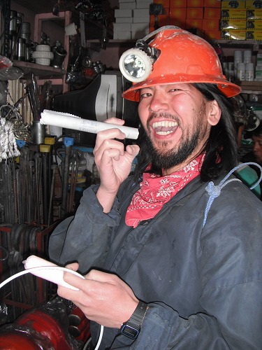 In Potosi, there is no regulation on buying/selling dynamites. So anyone, even kids can buy it! Dangerous!! It costs 15 to 24Bs. We would not have many chance to touch dynamites elsewhere, so we took a few photos with dynamites.