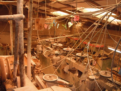 それからまたバスに乗り鉱物精製所を見学。石を砕いて化学薬品と水を使って銀、亜鉛などの鉱物を取り出します。
